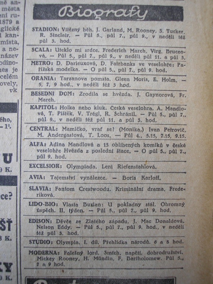 | Cinema | Tagesbote aus Mähren und Schlesien | 1939-03-31 | Folge 35 | 100 |
