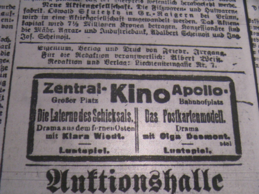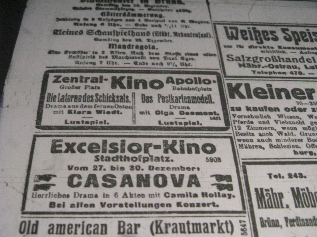 | Programme publishing date | 1918-12-27: Tagesbote aus Mähren und Schlesien | 1918-12-27 | 603 | 100 |