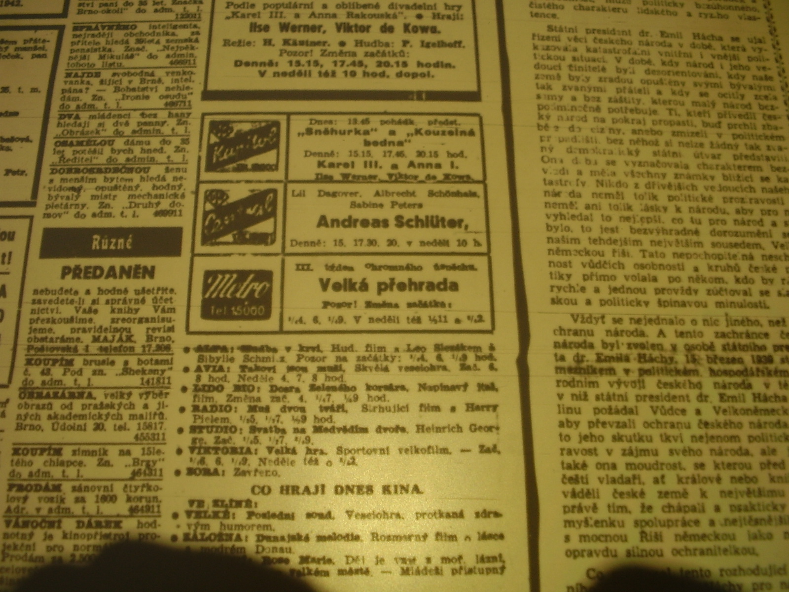 | Cinema | Moravské slovo | 1942-11-27 | 282 | 100 |