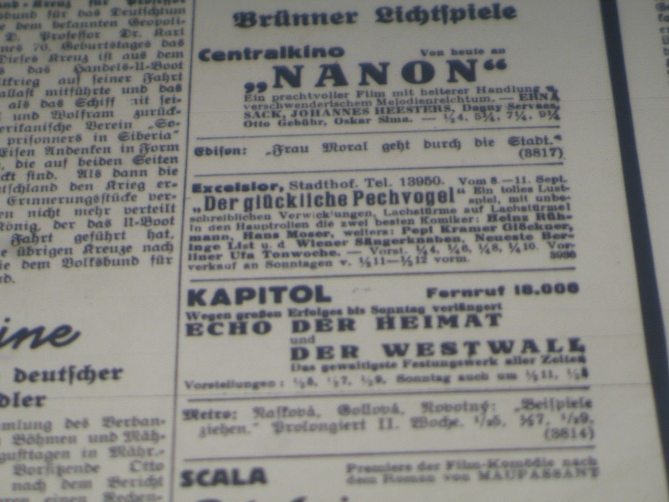 | Cinema | Tagesbote aus Mähren und Schlesien | 1939-09-08 | Folge 170 | 100 |