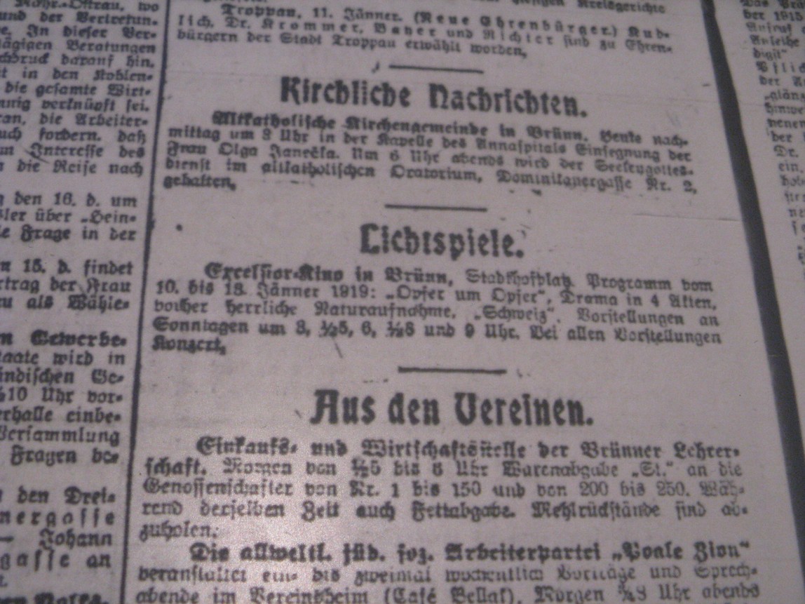 | Programme publishing date | Tagesbote aus Mähren und Schlesien | 1919-01-12 | 19 | 100 |