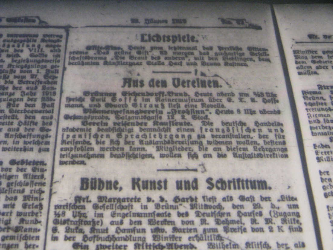 | Programme publishing date | 1919-01-23: Tagesbote aus Mähren und Schlesien | 1919-01-23 | 37 | 100 |