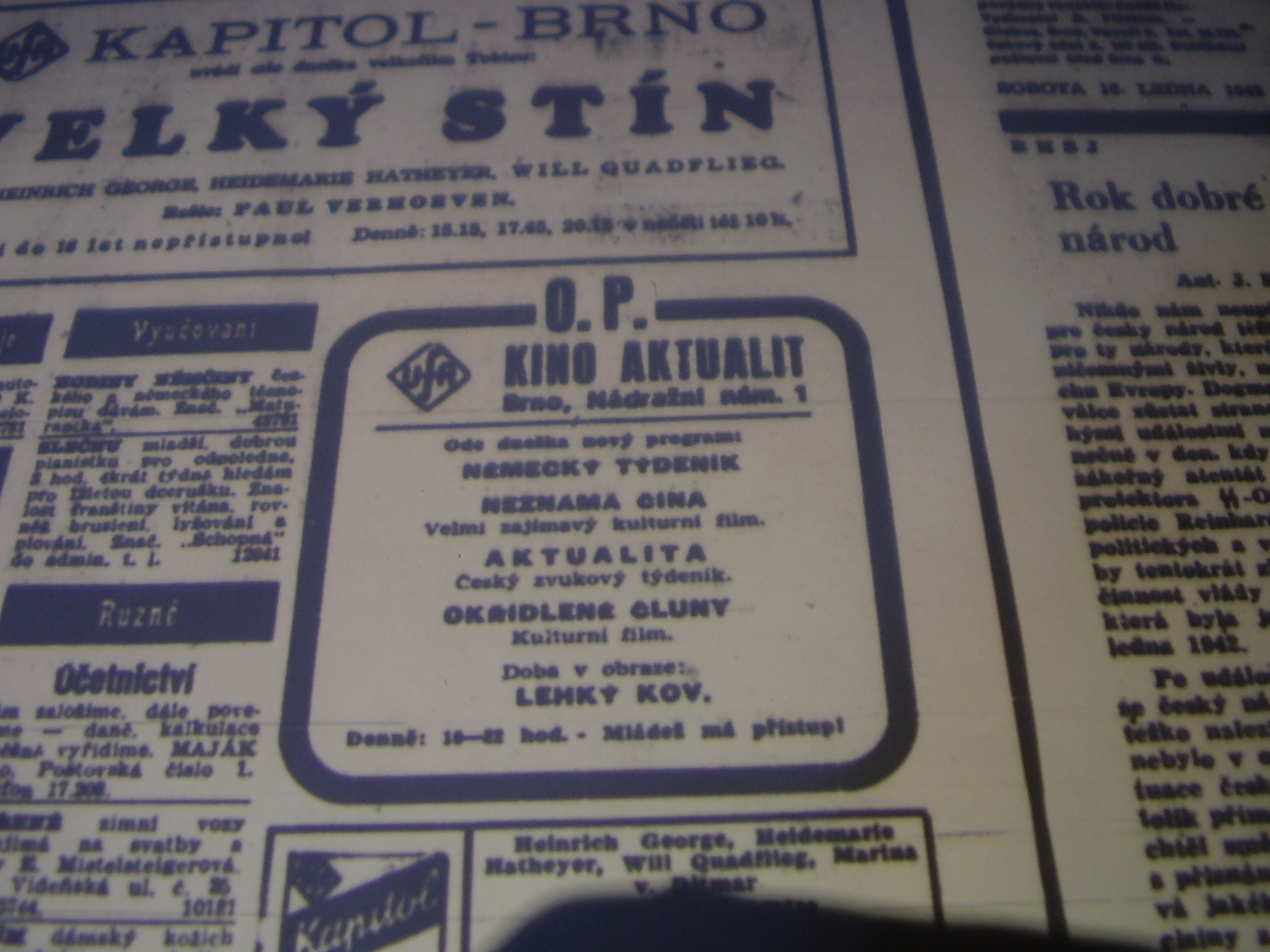| Cinema | Moravské noviny | 1943-01-15 | 12 | 100 |
