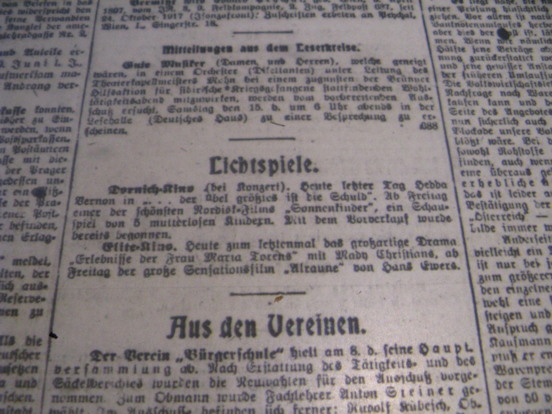 | Cinema | Tagesbote aus Mähren und Schlesien | 1919-03-13 | 121 | 100 |