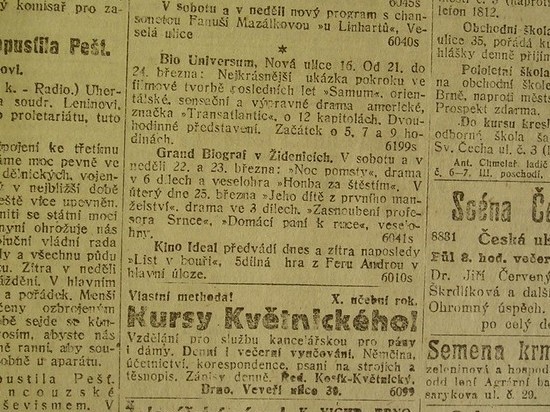 | Cinema | Lidové noviny | 1919-03-21 | 80 | 100 |