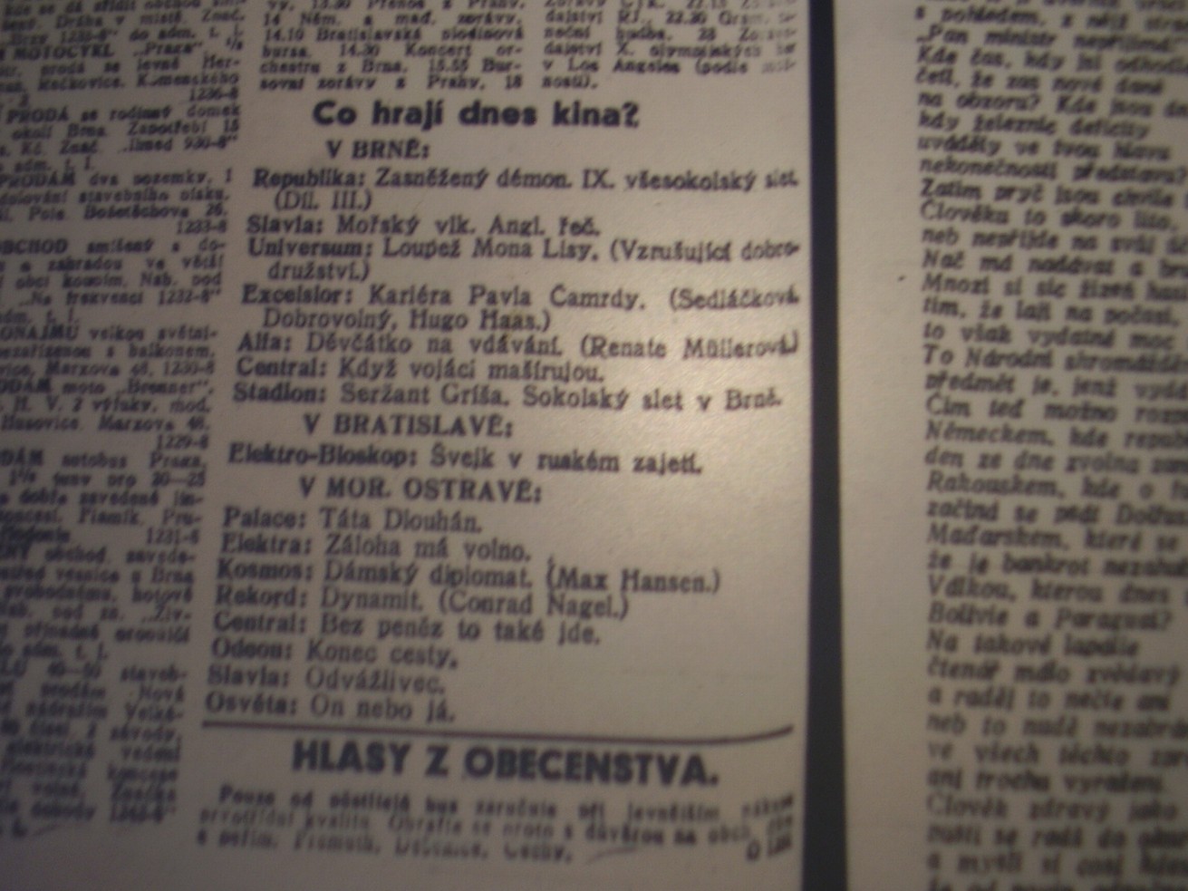 | Kino | Moravské noviny | 1932-08-06 | 181 | 100 |