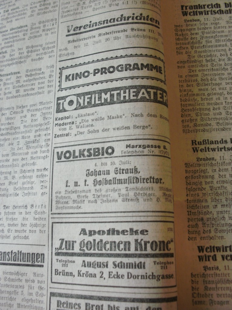 | Datum zveřejnění programu | 1933-07-11: Volksfreund | 1933-07-11 | 159 | 100 |