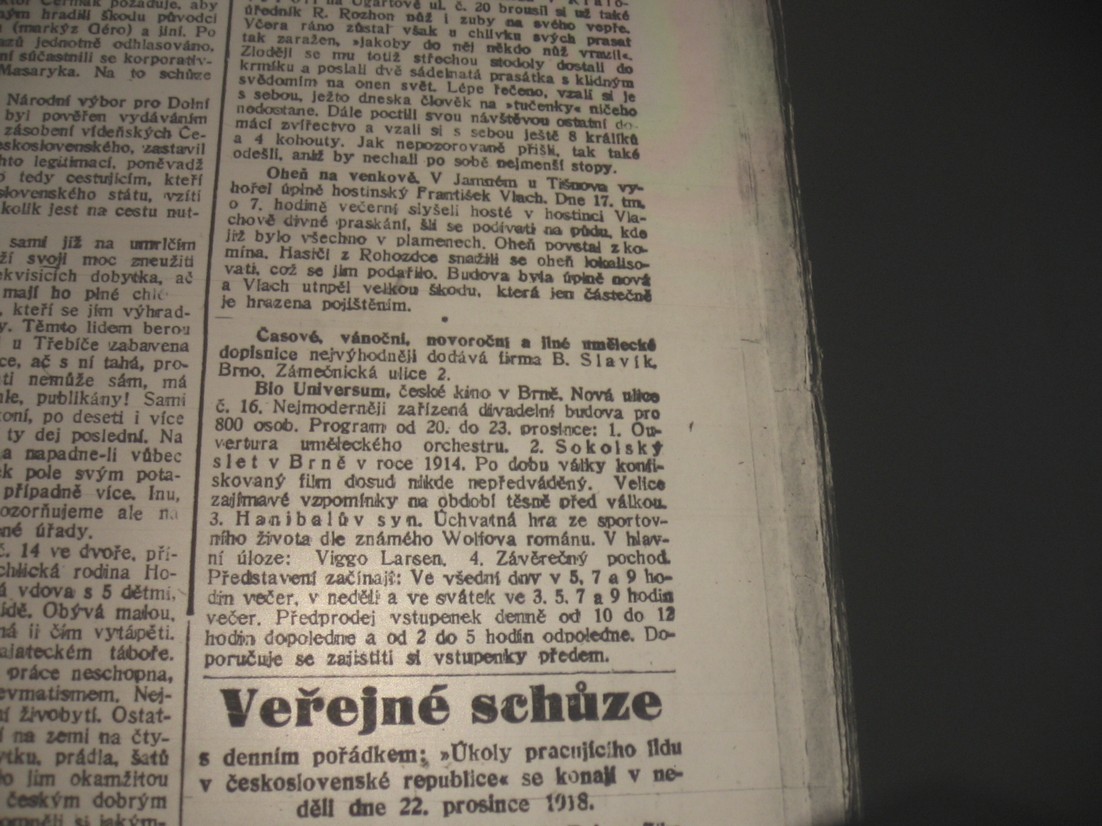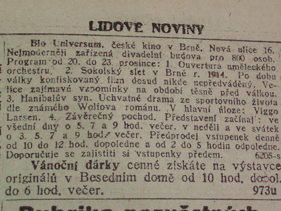 | Počet promítnutí | Lidové noviny | 1918-12-21 | 350 | 100 |