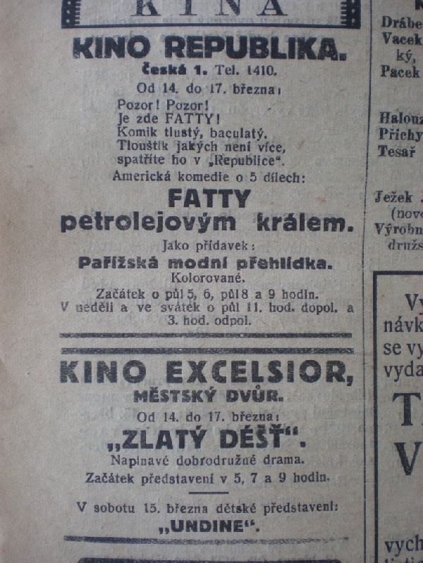 | Počet promítnutí | Den | 1924-03-14 | 73 | 100 |