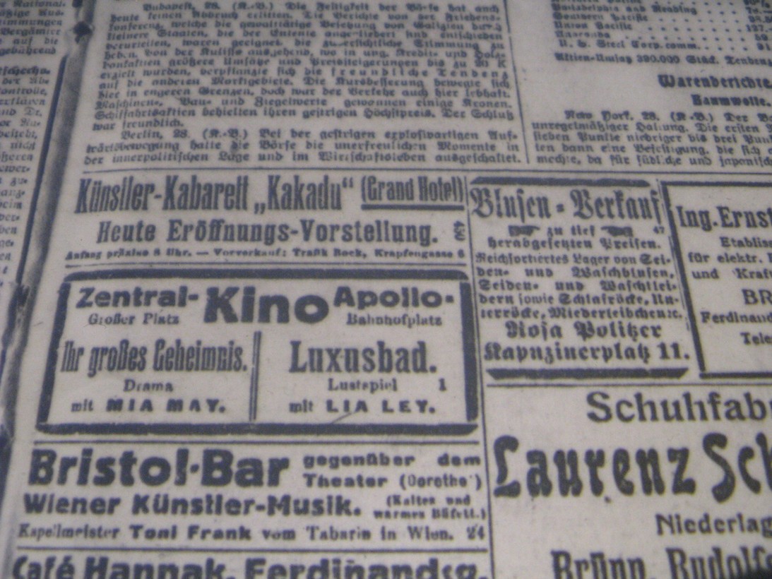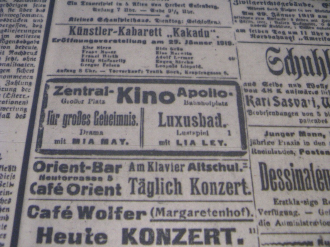 | Kino | Tagesbote aus Mähren und Schlesien | 1919-01-28 | 45 | 100 |