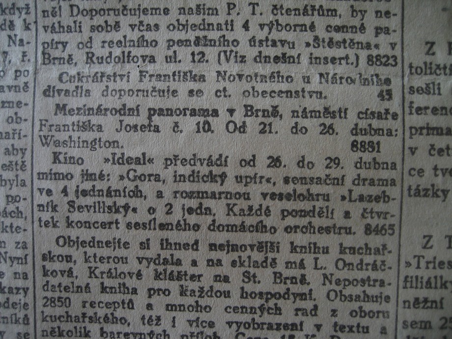 | Numbers | Gora, indický upír: Lidové noviny | 1918-04-28 | 115 | 100 |