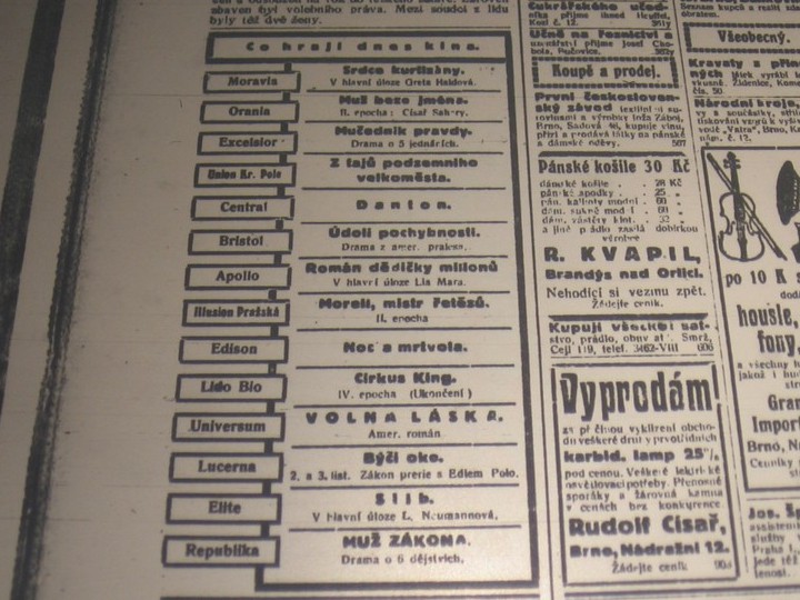 | Programme publishing date | 1921-11-03: Moravské noviny | 1921-11-03 | 251 | 100 |