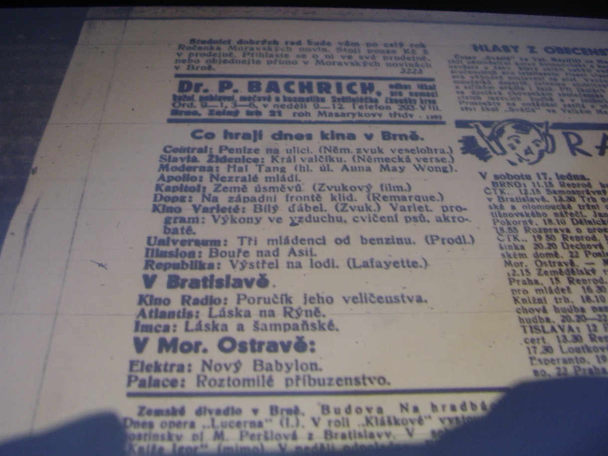 | Cinema | Moravské noviny | 1931-01-16 | 13 | 100 |