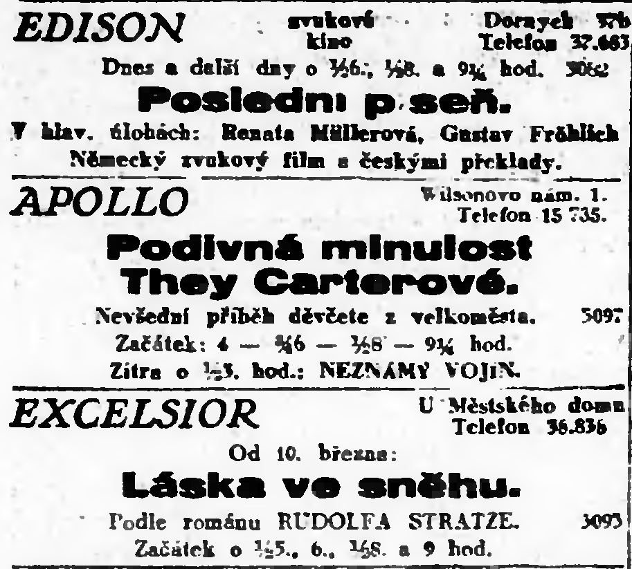 | Cinema | Lidové noviny | 1931-03-10 | 126 | 100 |