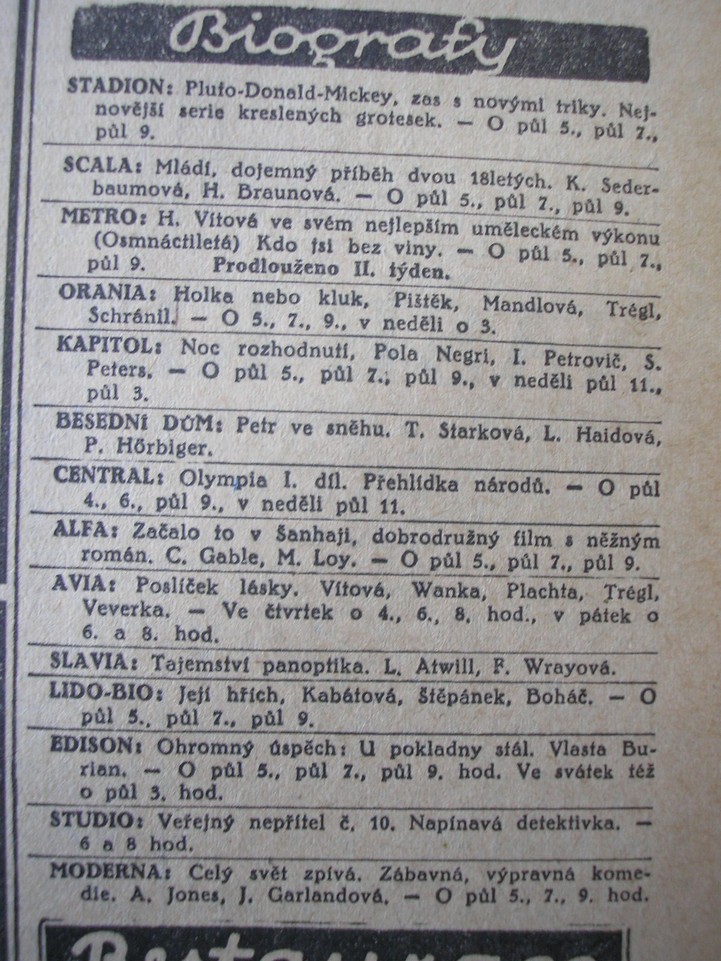 | Cinema | Moravské slovo | 1939-05-18 | 115 | 100 |