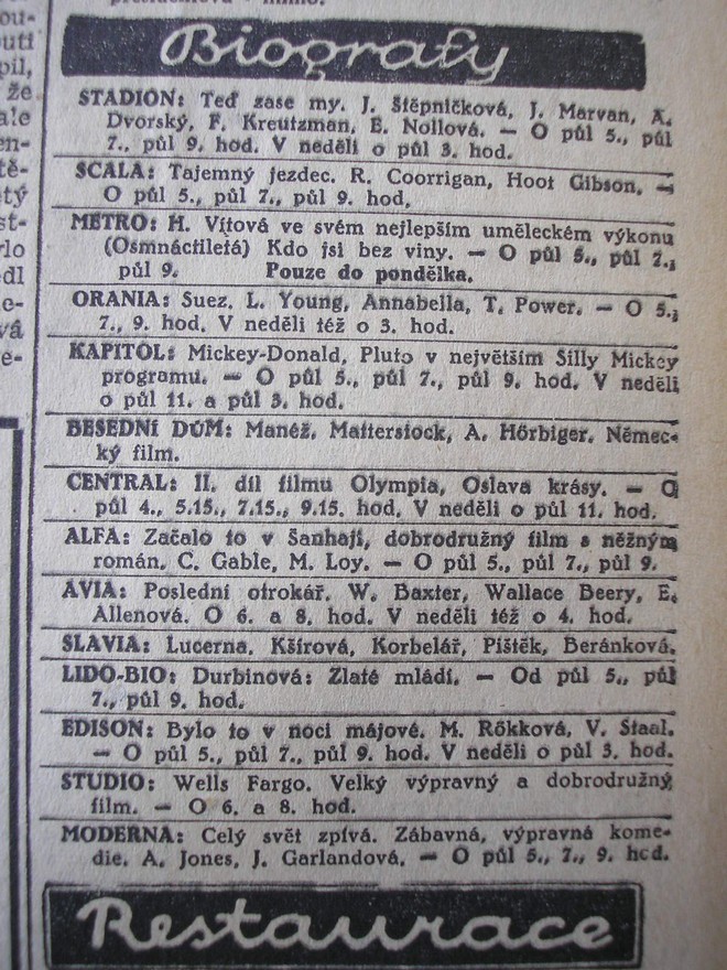 | Cinema | Moravské slovo | 1939-05-20 | 117 | 100 |