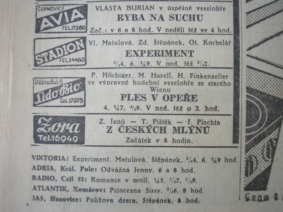 | Cinema | Moravské slovo | 1943-10-08 | 238 | 100 |