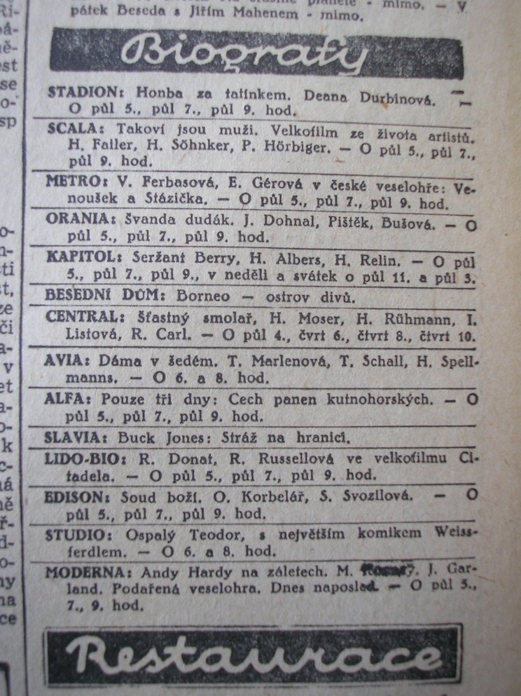 | Cinema | Moravské slovo | 1939-05-31 | 125 | 100 |