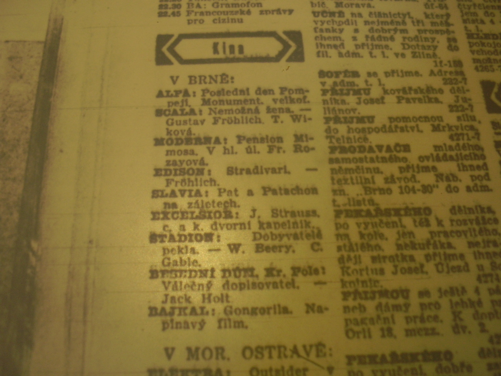 | Cinema | Moravské noviny | 1936-07-14 | 159 | 100 |