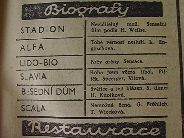 | Cinema | Moravské noviny | 1936-07-17 | 162 | 100 |