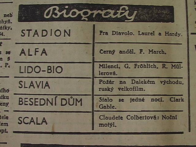| Cinema | Moravské noviny | 1936-07-24 | 168 | 100 |