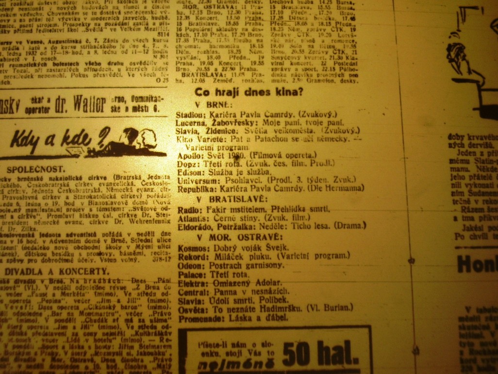 | Programme publishing date | 1932-01-02: Moravské noviny | 1932-01-02 | 1 | 100 |