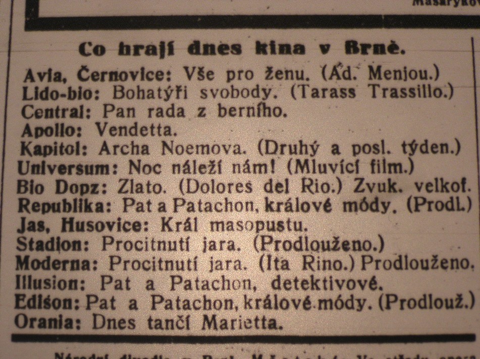 | Cinema | Moravské noviny | 1930-03-05 | 52 | 100 |
