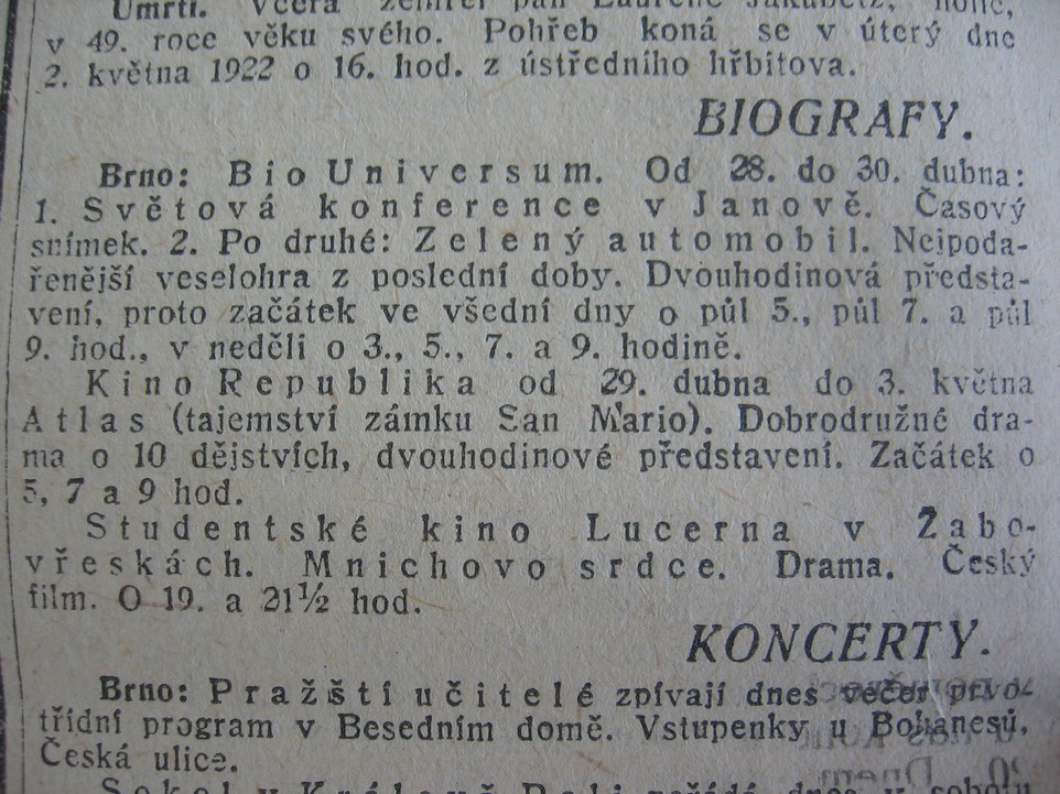 Number of screenings Lidové noviny 1922-04-29 212 100