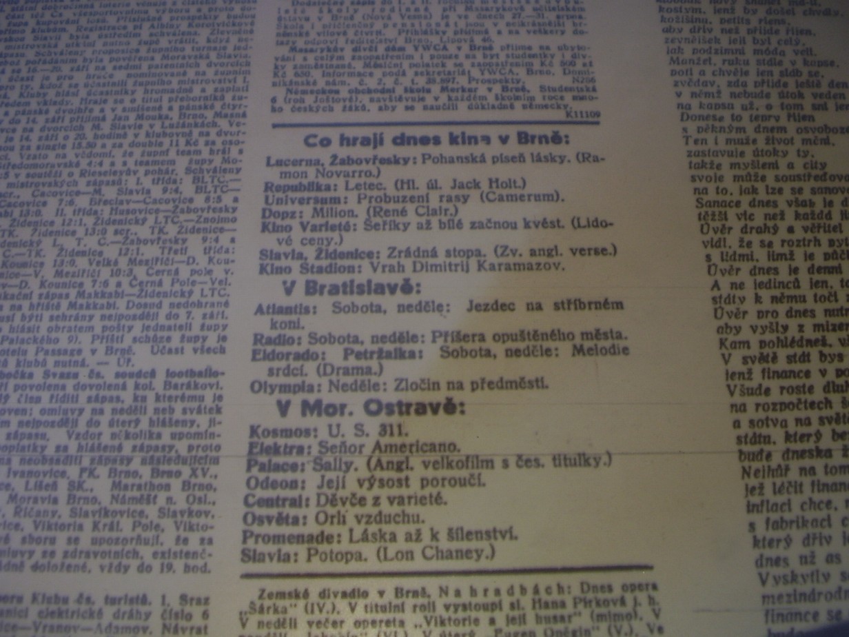 | Cinema | Moravské noviny | 1931-08-22 | 193 | 100 |