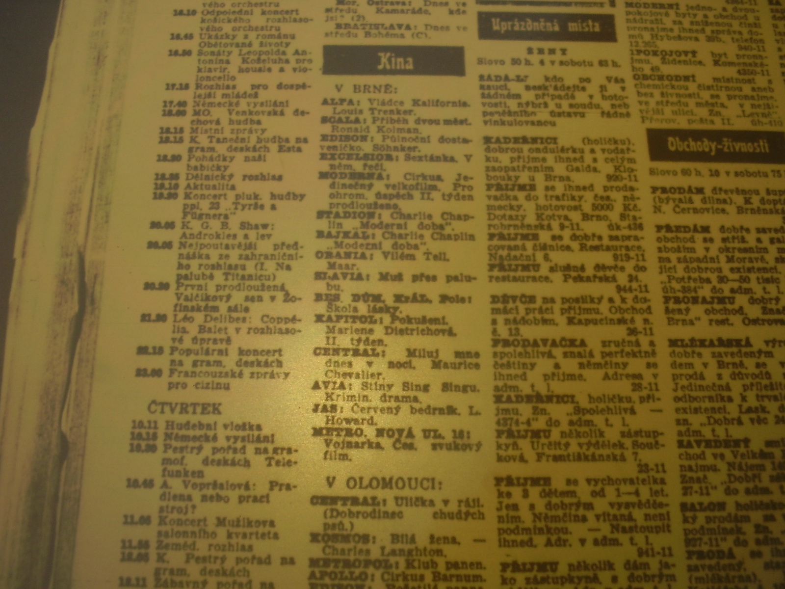 | Programme publishing date | Moravské noviny | 1936-11-18 | 265 | 100 |