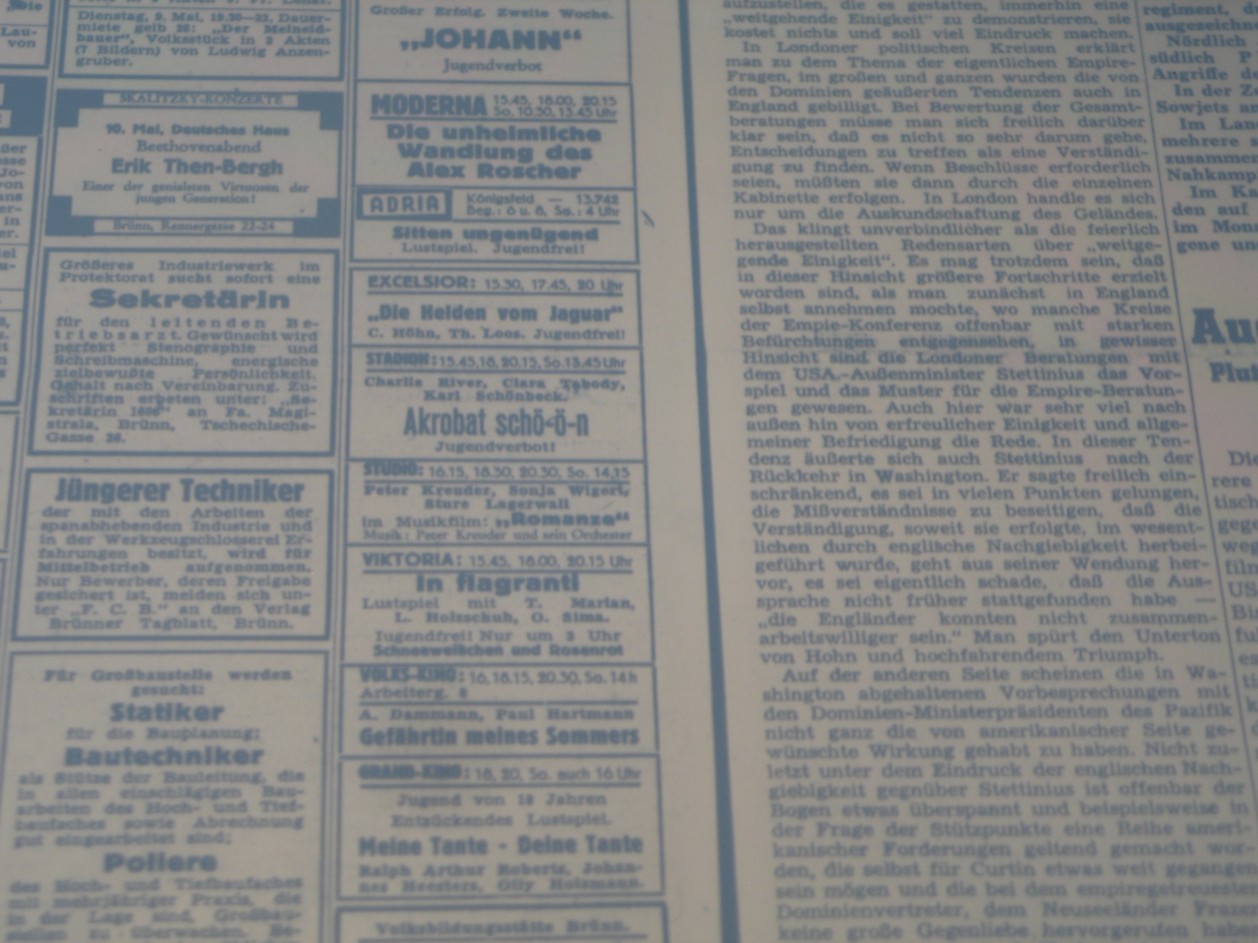 | Number of screenings | Tagesbote aus Mähren und Schlesien | 1944-05-06 | 124 | 100 |