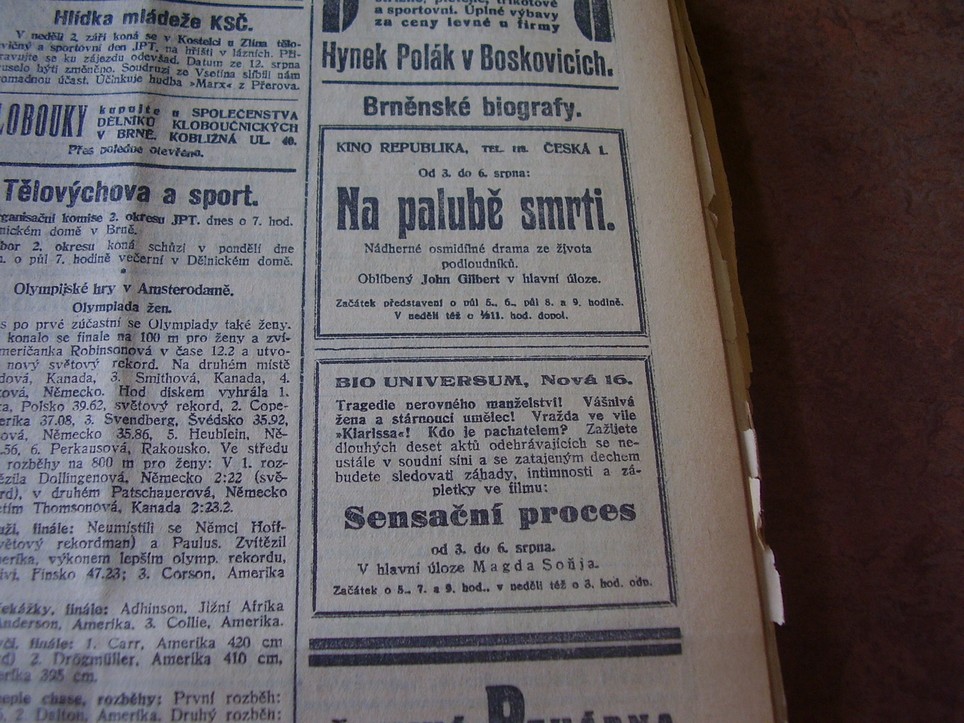 | Cinema | Rovnost | 1928-08-03 | 213 | 100 |