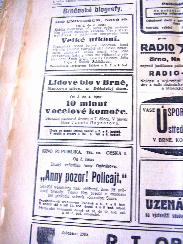 | Cinema | Rovnost | 1928-10-02 | 273 | 100 |