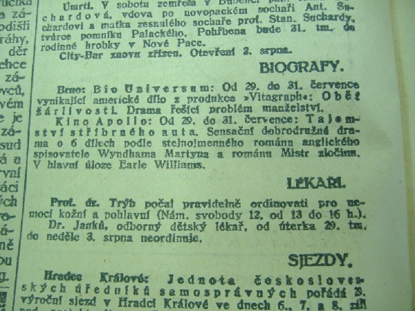 | Programme publishing date | Lidové noviny | 1924-07-29 | 377 | 100 |