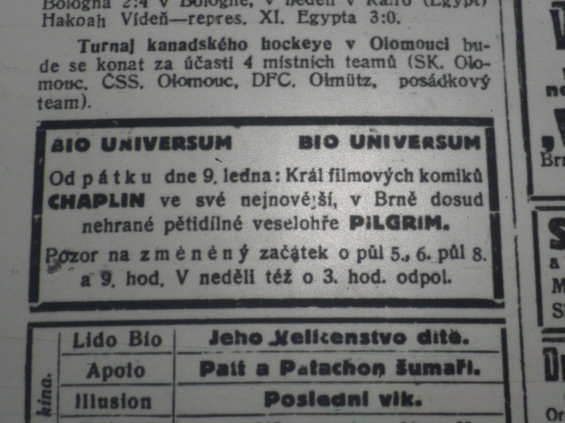| Cinema | Moravské noviny | 1925-01-10 | 6 | 100 |