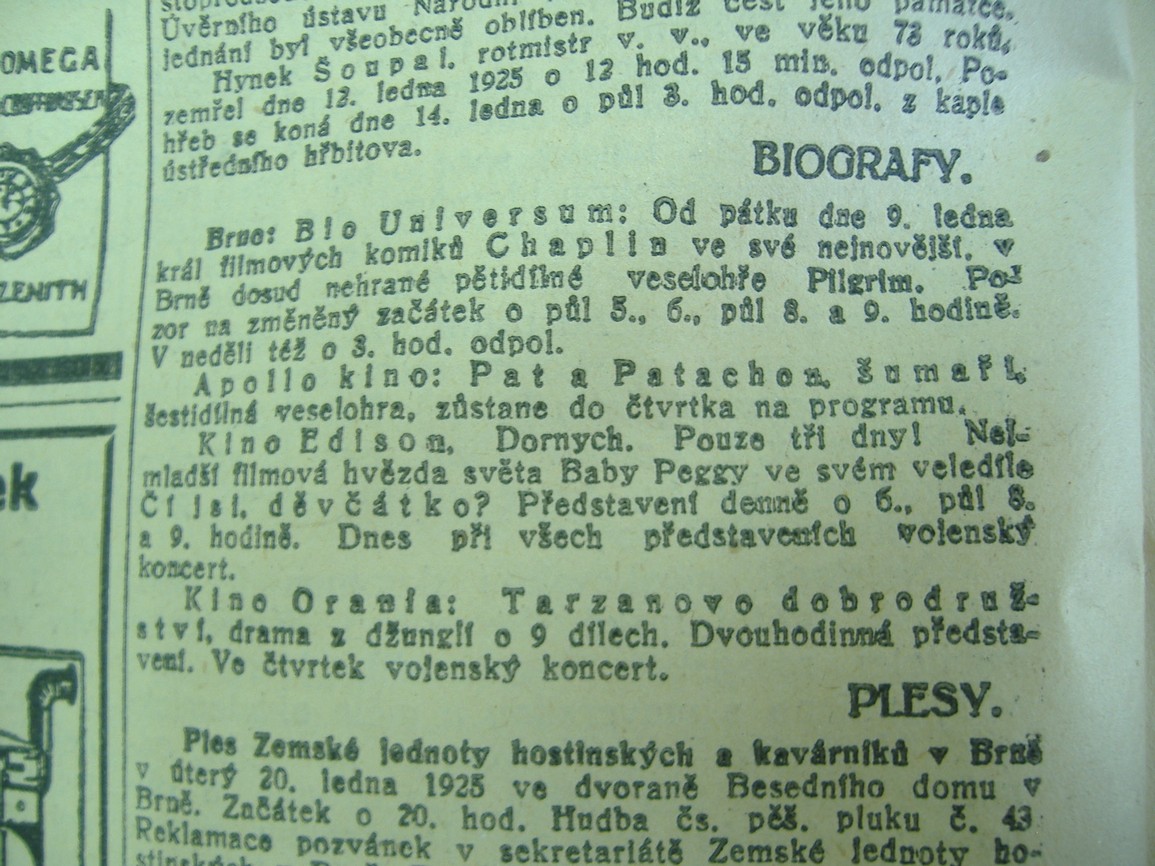 | Cinema | Moravské noviny | 1925-01-14 | 9 | 100 |
