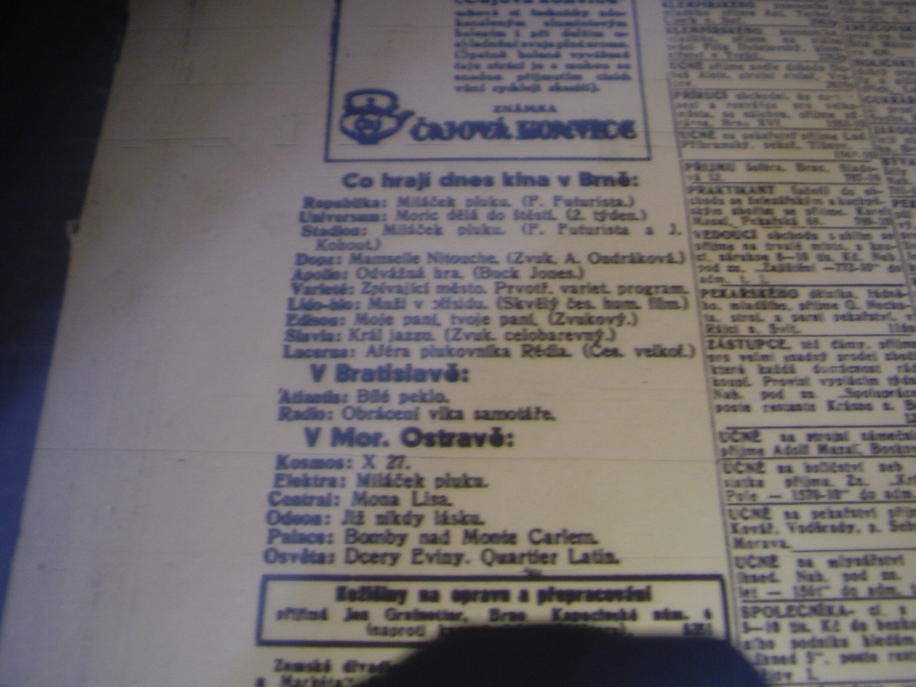 | Cinema | Moravské noviny | 1931-10-16 | 239 | 100 |