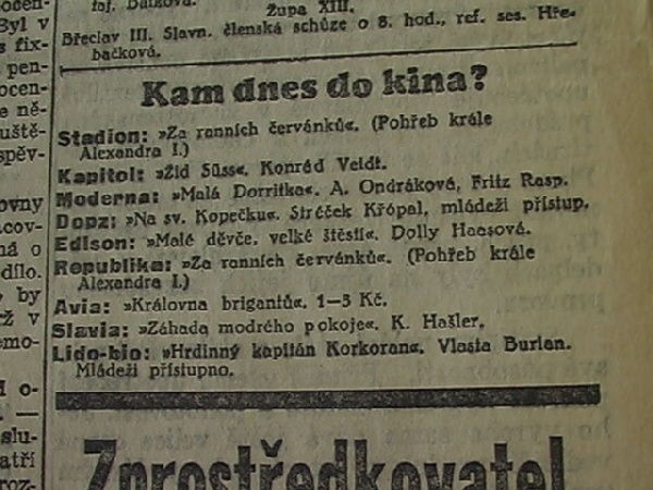 | Programme publishing date | 1934-10-26: Moravské noviny | 1934-10-26 | 100 | |