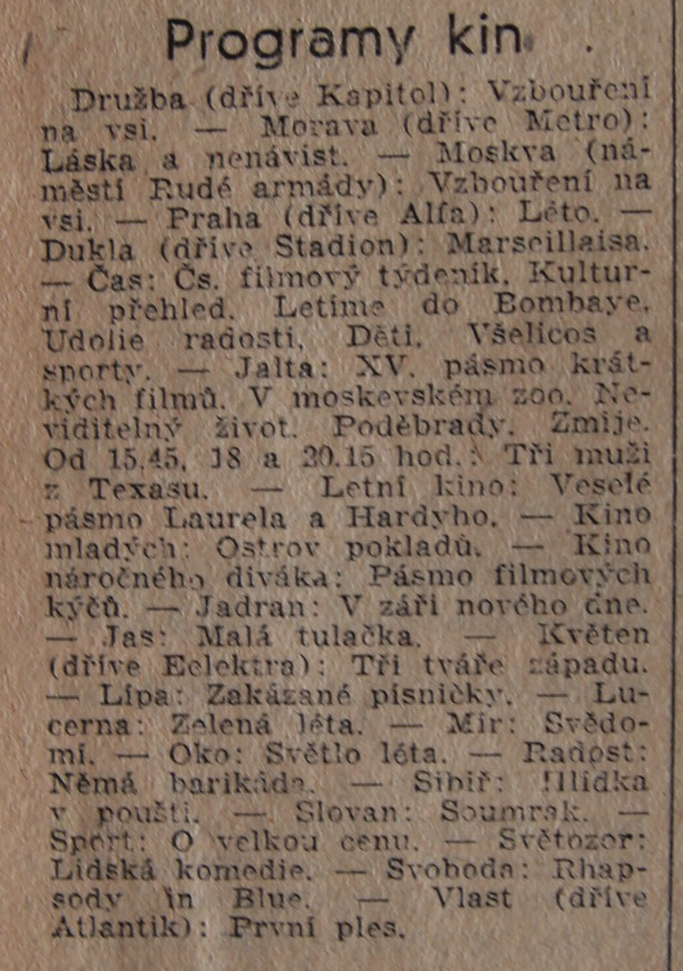 | Programme publishing date | Rudé právo | 1949-06-08 | 134 | 100 |