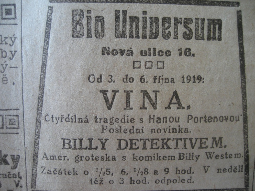 | Numbers | Billy detektivem: Lidové noviny | 1919-10-03 | 274 | 100 |