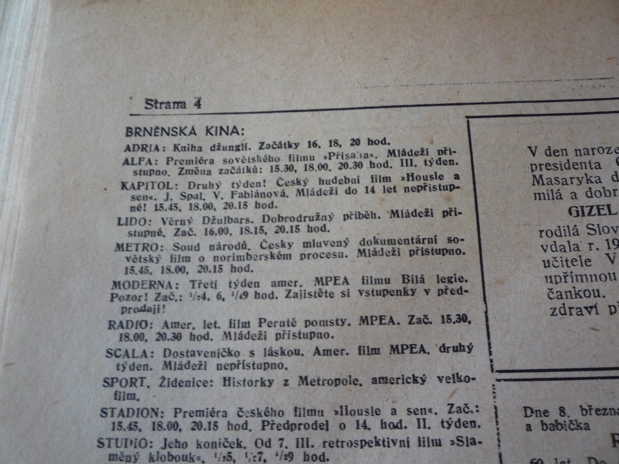 | Programme publishing date | Čin | 1947-03-07 | 56 | 100 |