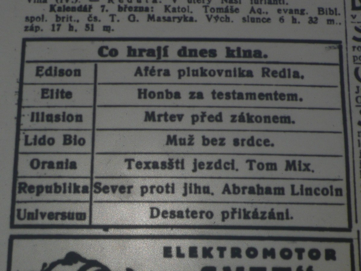 | Cinema | Moravské noviny | 1925-03-07 | 53 | 100 |