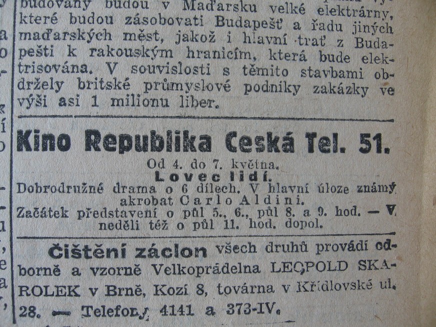 | Cinema | Lidové noviny | 1919-11-14 | 315 | 100 |