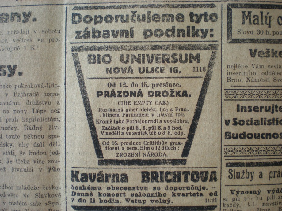 | Cinema | Lidové noviny | 1919-12-12 | 343 | 100 |