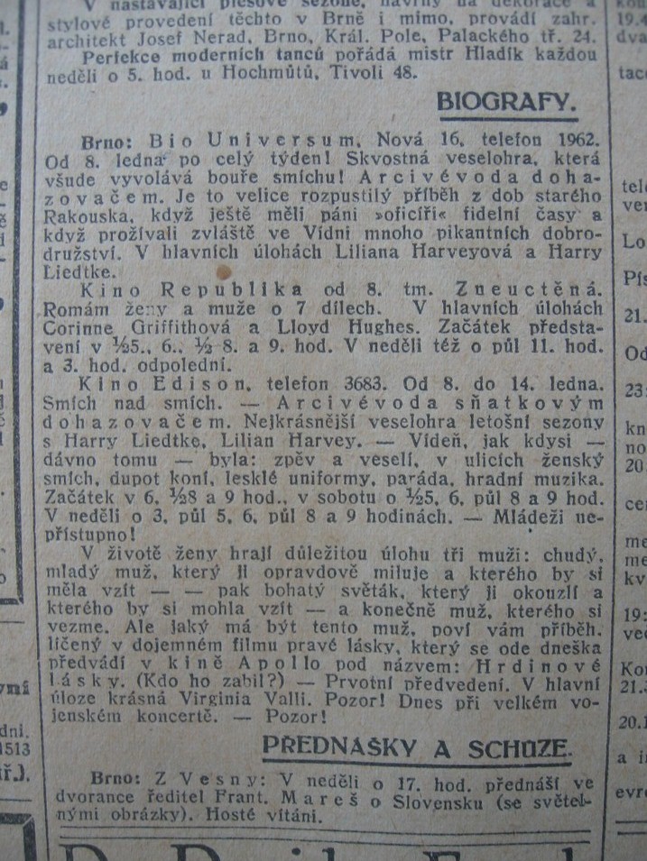 | Cinema | Moravské noviny | 1926-01-12 | 7 | 100 |