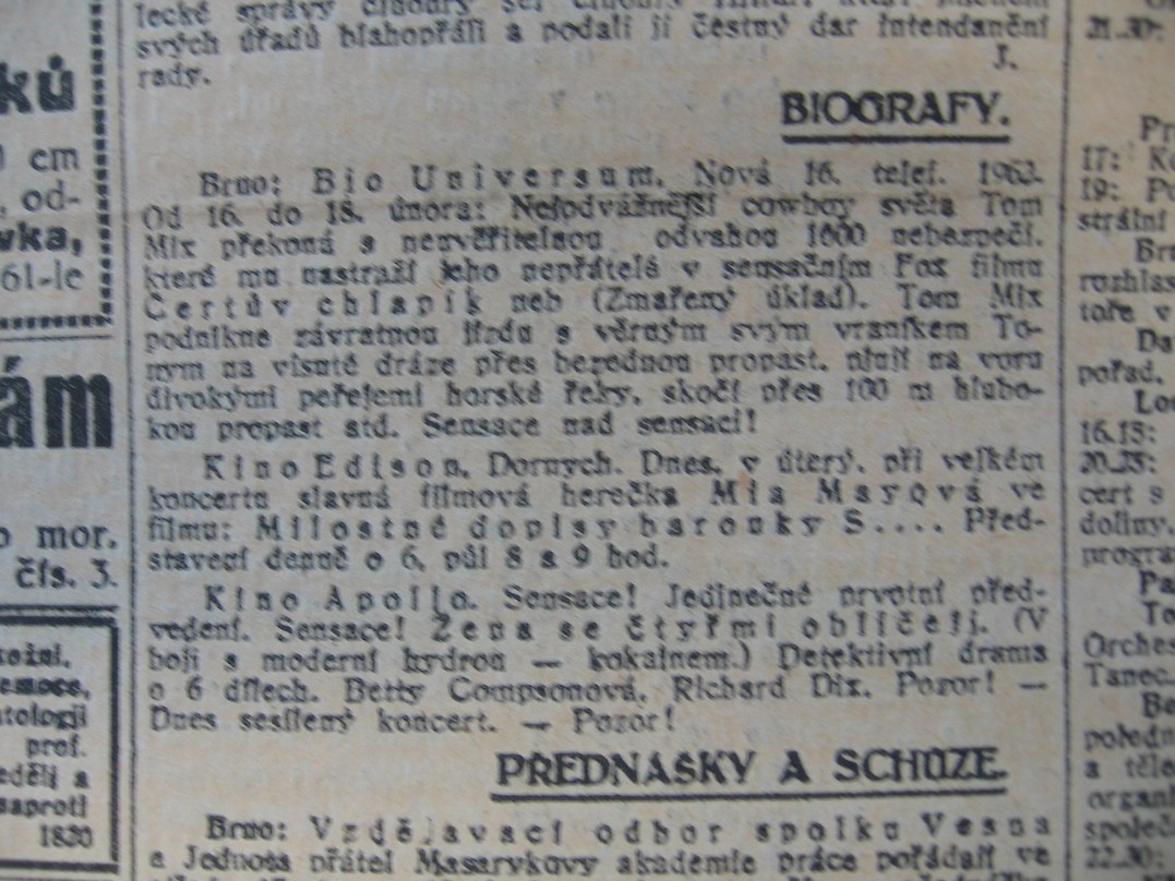 | Cinema | Moravské noviny | 1926-02-17 | 38 | 100 |