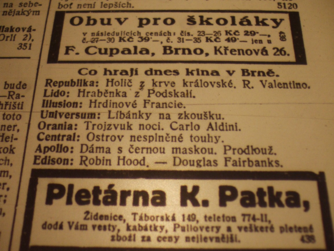 | Cinema | Moravské noviny | 1926-03-03 | 50 | 100 |