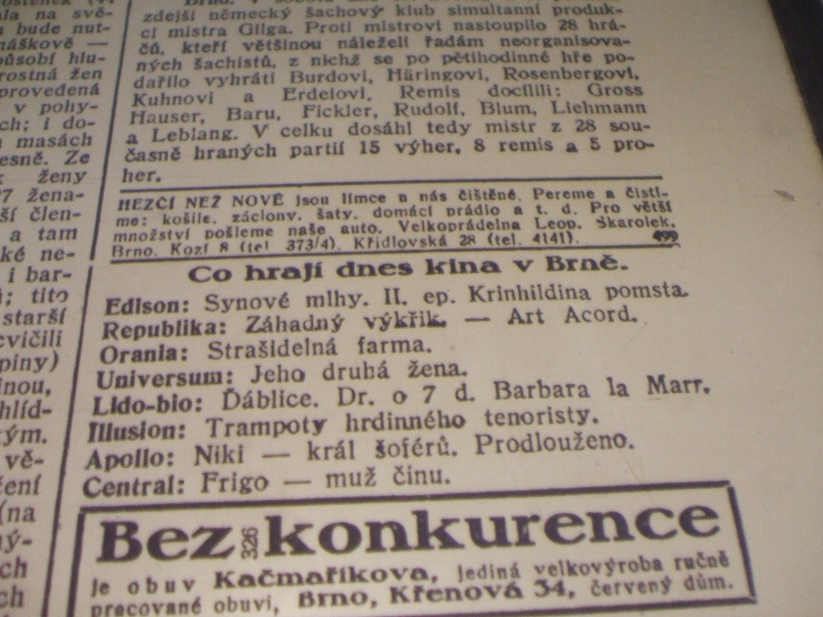 | Cinema | Moravské noviny | 1926-05-19 | 114 | 100 |