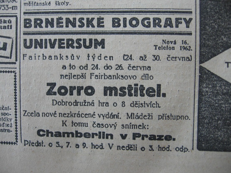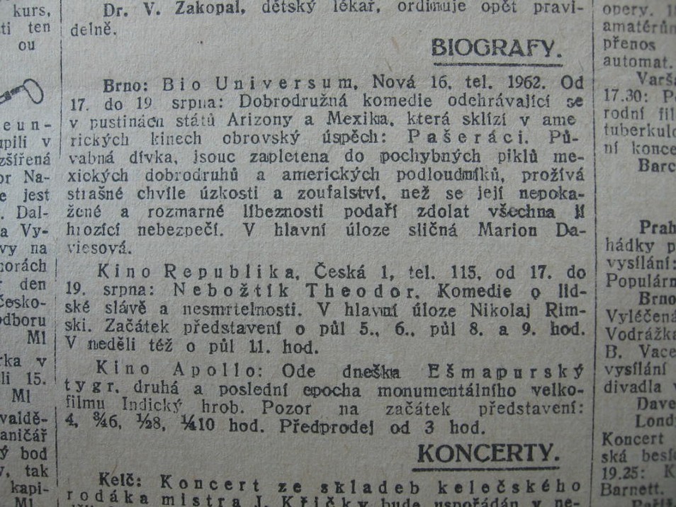| Cinema | Moravské noviny | 1926-08-18 | 188 | 100 |