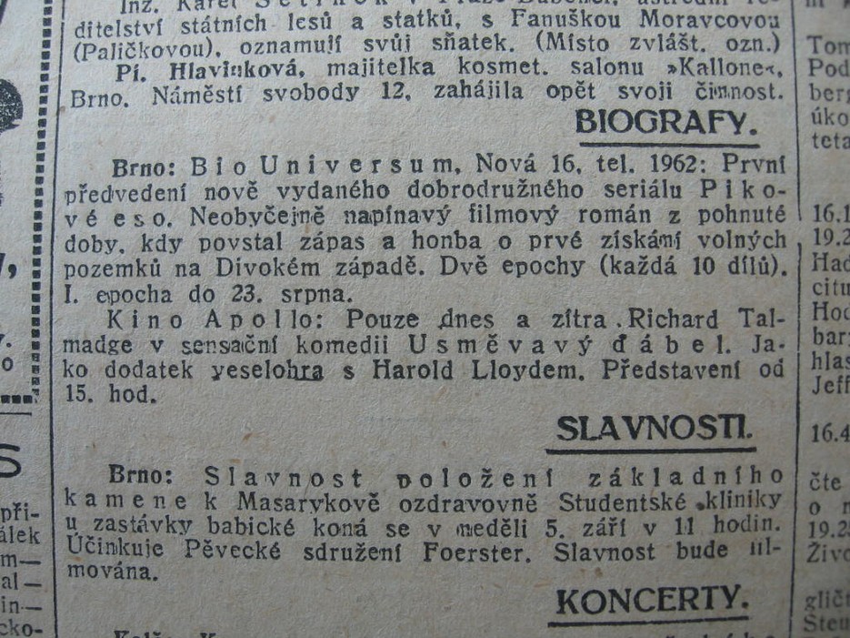 | Note | Moravské noviny | 1926-08-21 | 191 | 100 |